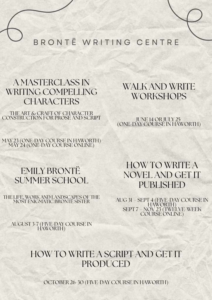 For more information about any of our courses please scroll down and click on the course. To book on any of our courses please email: brontewritingcentre@outlook.com
